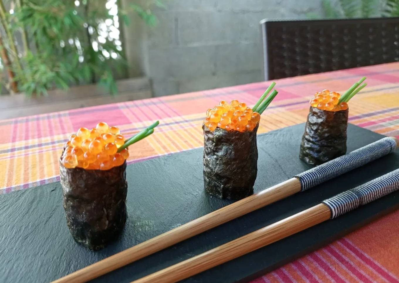 Au pay du soleil Levant il est garni à l'origine de Tokibo qui définie les œufs de poisson volant ( l'équivalent de notre caviar).