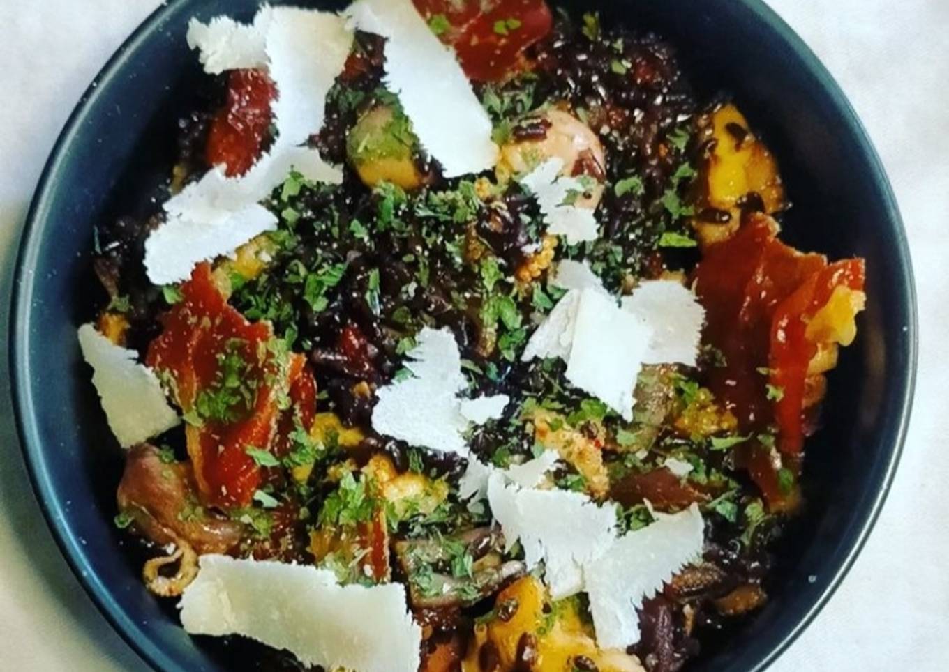 - Mélangez le tout avec la salade préalablement préparé